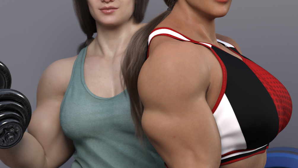 This issue contains both rapid and gradual female muscle and height growth ranging from realistic to very unrealistic proportions. There is flexing and display of massive female muscle. There are three female muscle growth sequences.